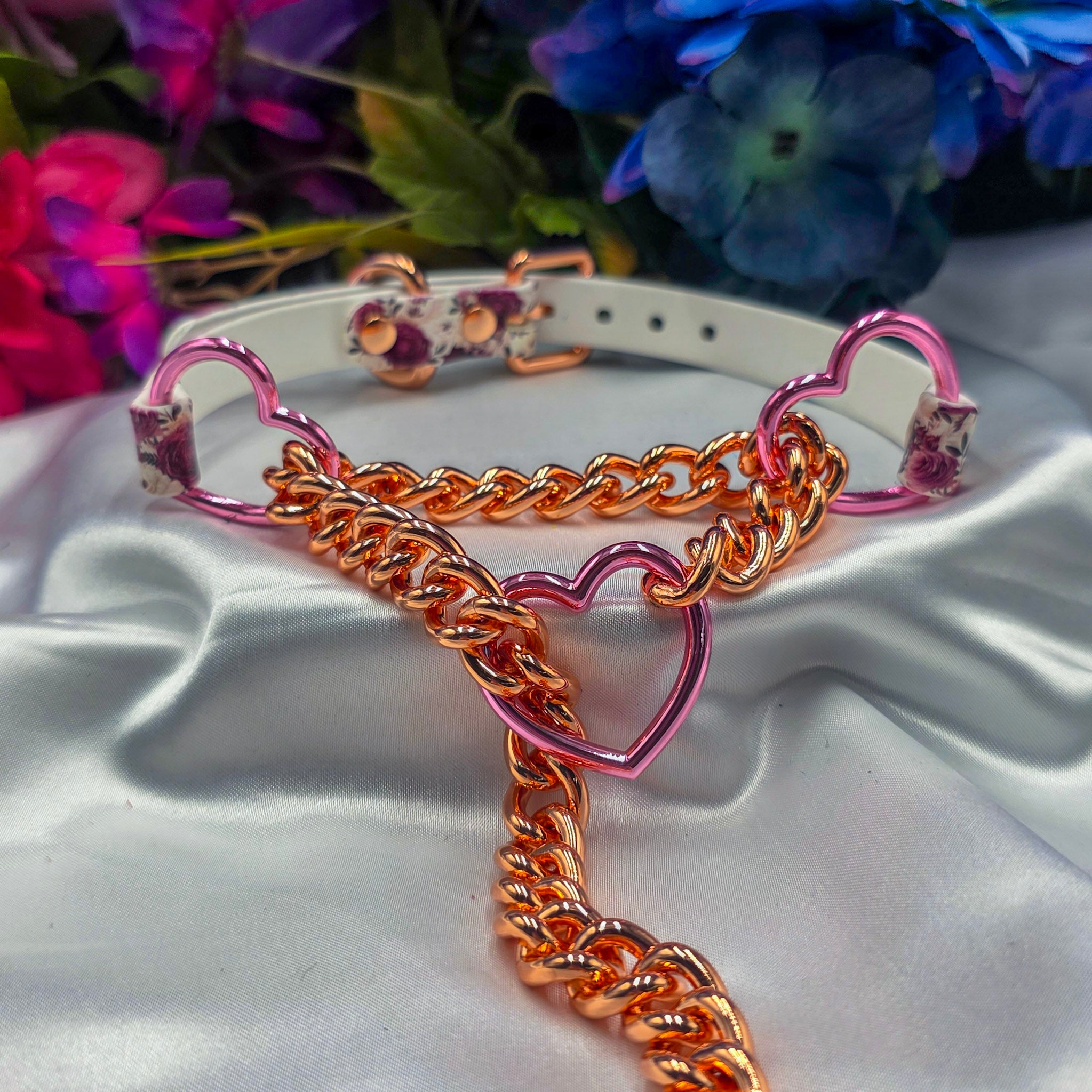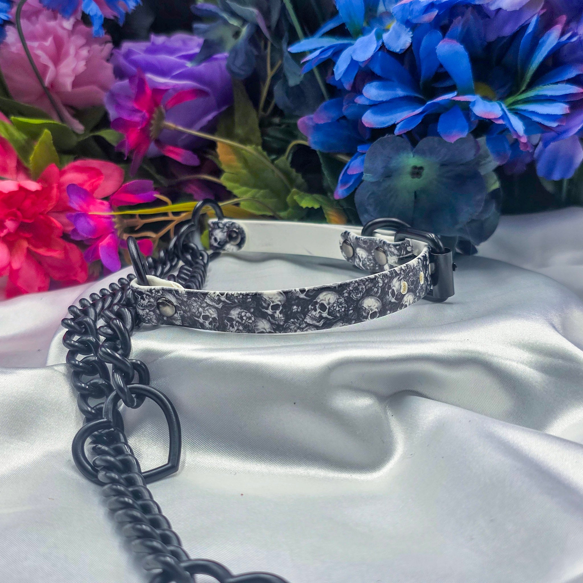 It's time to bring your partner in just a liiiittttlleeeee bit closer! These special edition Martingale Slip Chains are all made with UV Printed Biothane/Faux leather.