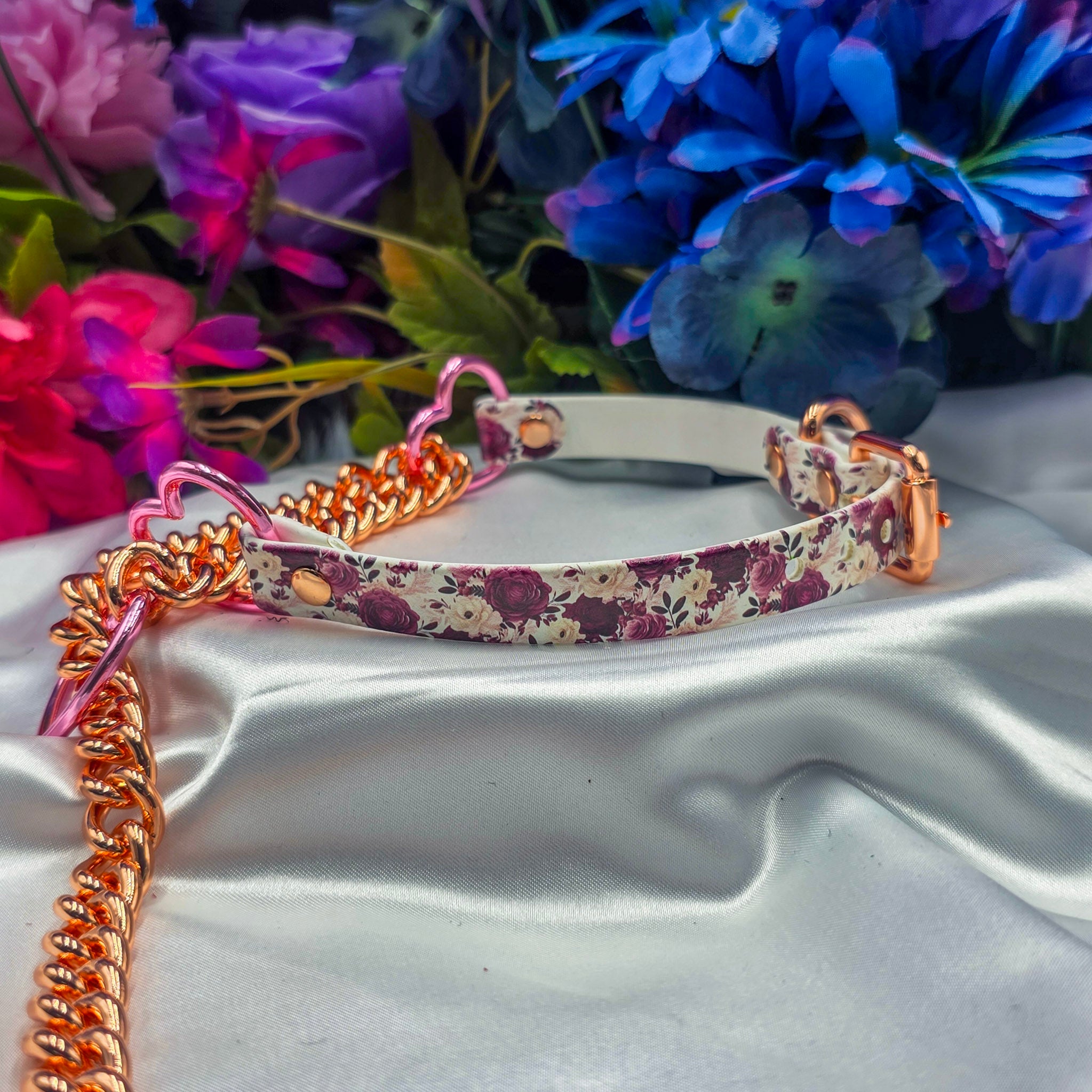 - Floral Skull - Standard 5/8" width band with matte black hardware and matte black hearts.