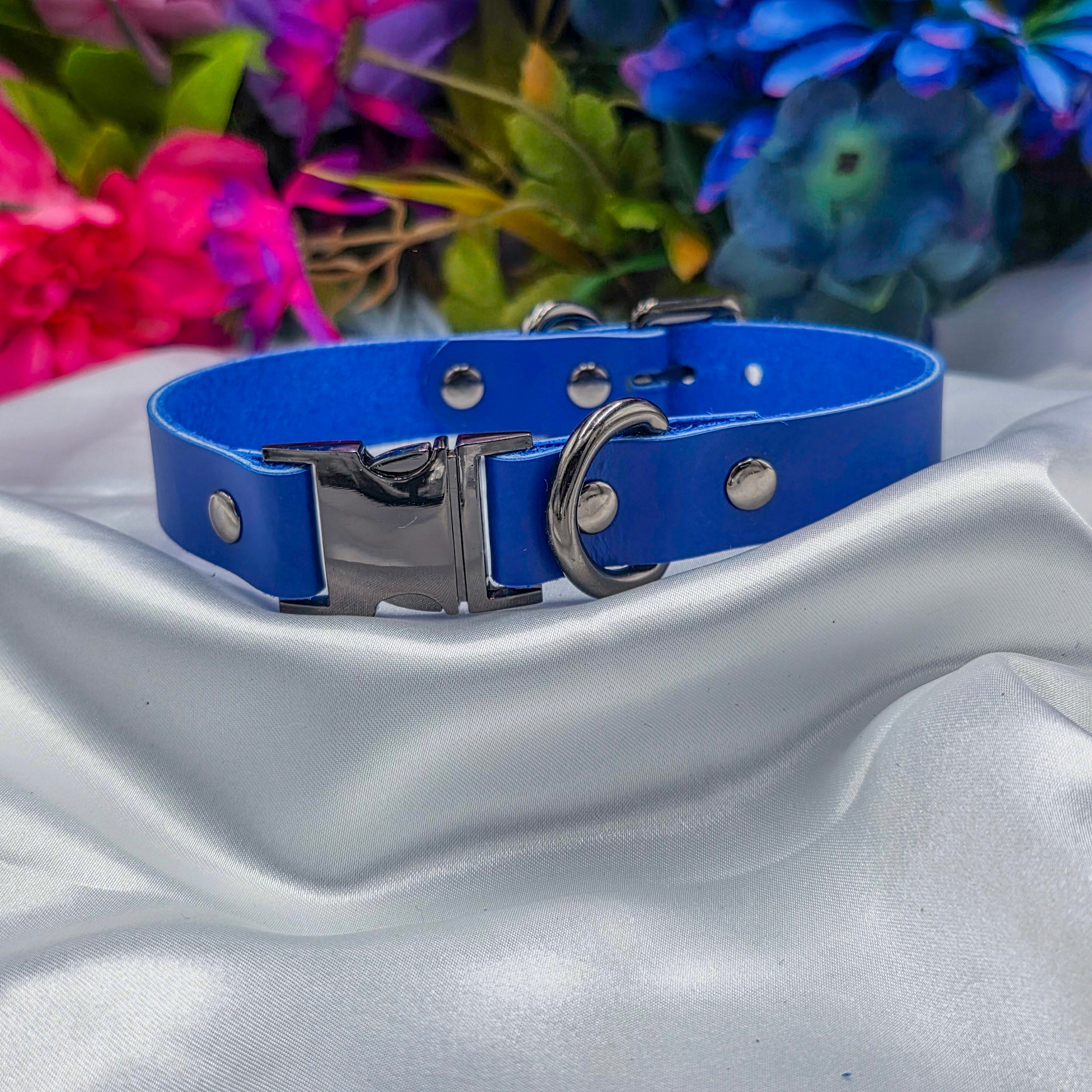 Features a large side clicking buckle in your metal choice. Can be made with a bow as well!
