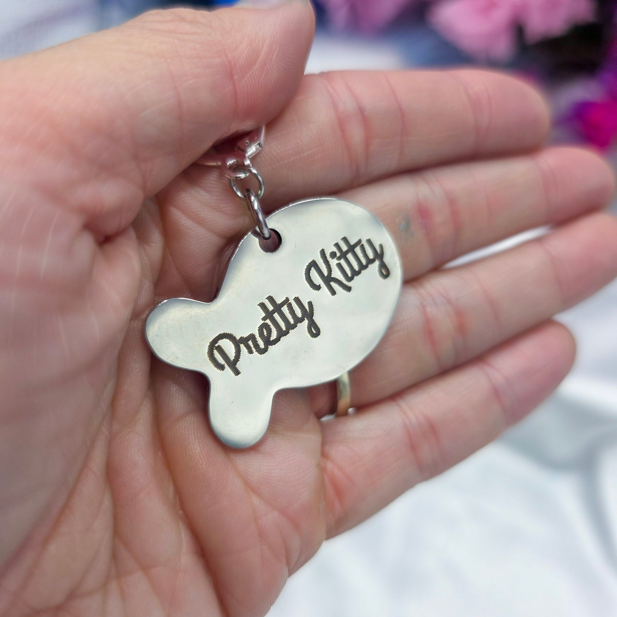 Personalize/Customize your own Stainless-Steel shaped tag with your own words. Can be single or double sided engraved to add to any collar/choker.