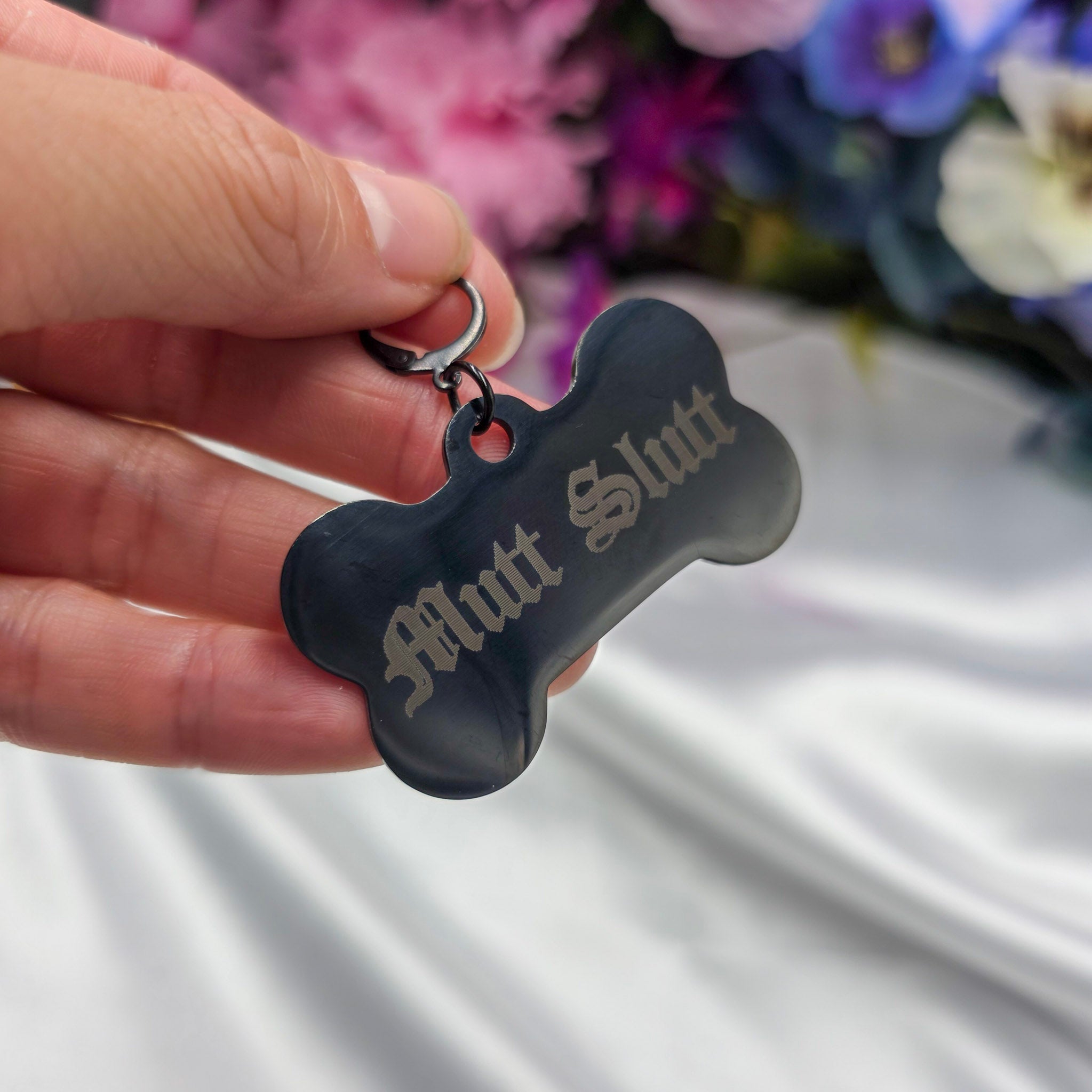 Personalize/Customize your own Stainless-Steel shaped tag with your own words.  Can be single or double sided engraved to add to any collar/choker.