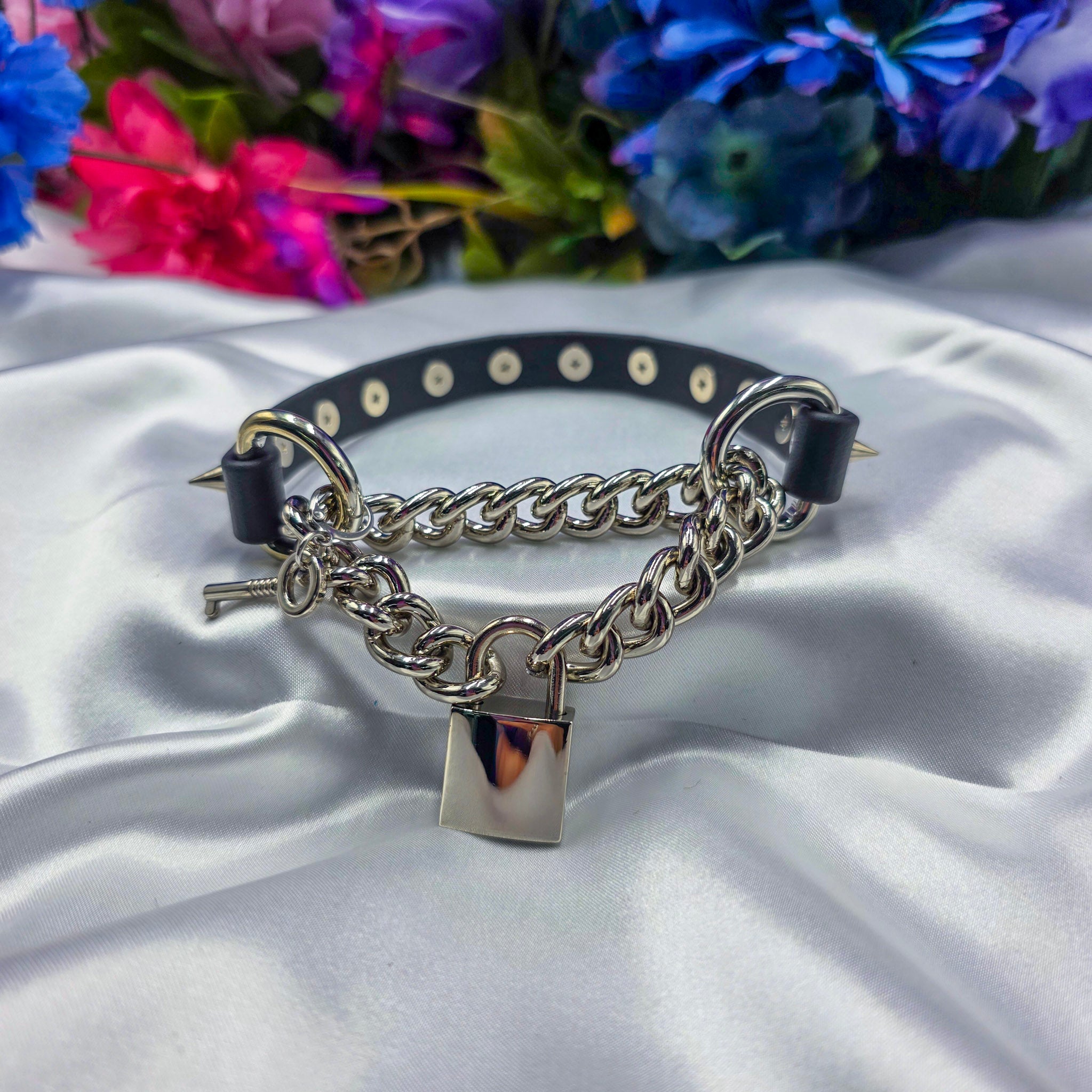 This piece is made with the hardware metal of your choice from the chain, heart lock, and rivets. Lock is functional and will come with one key on a hook.