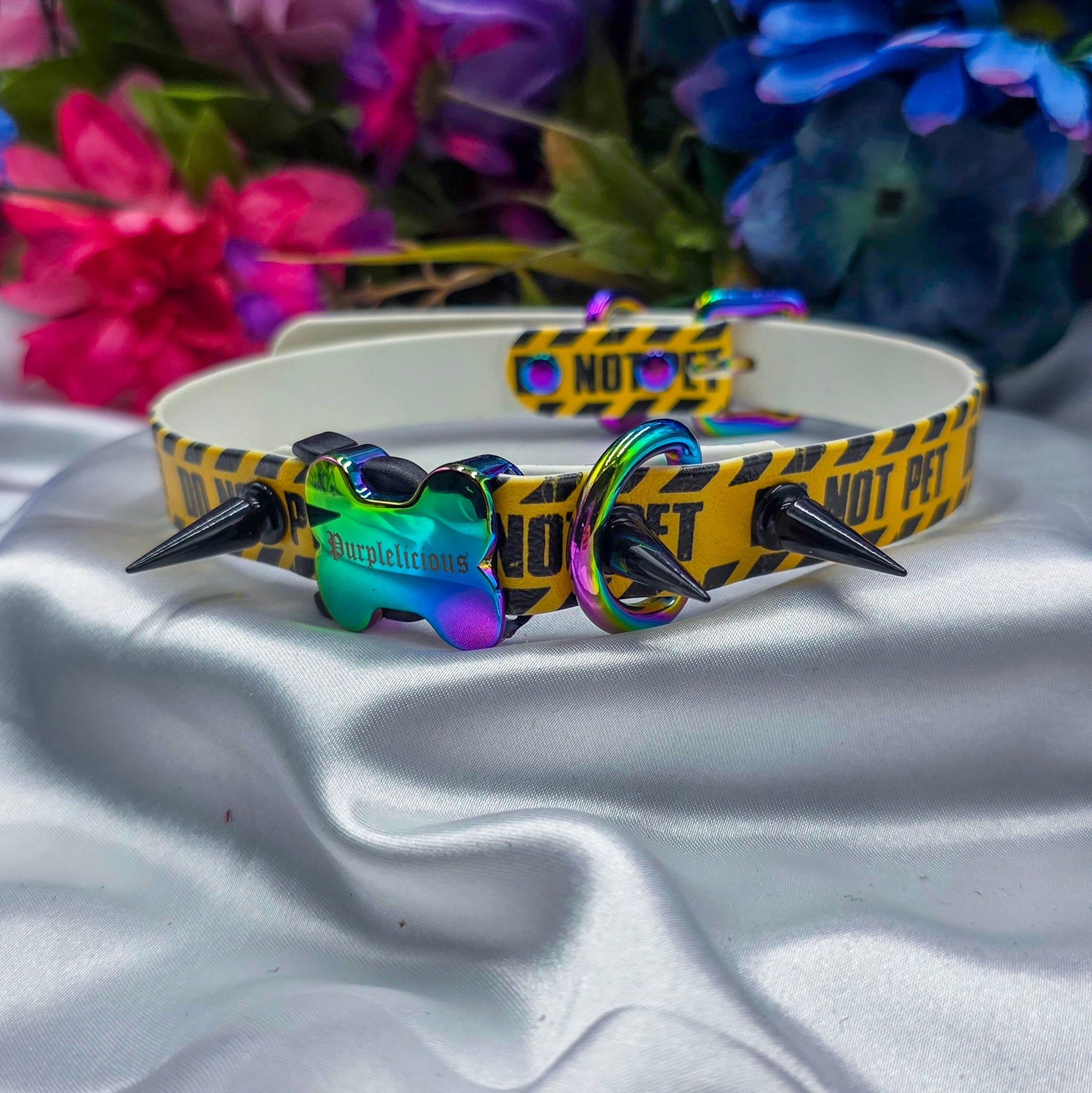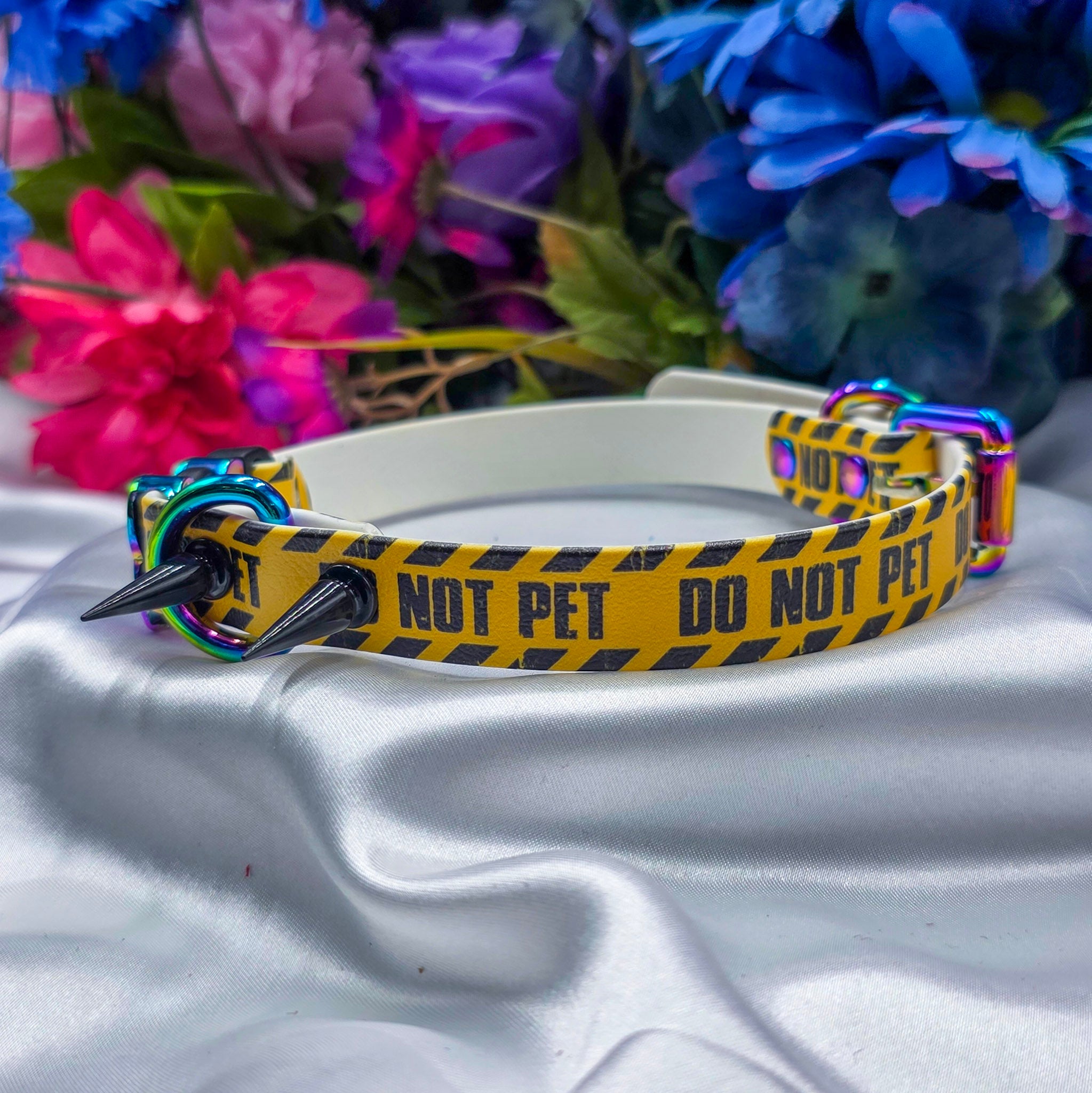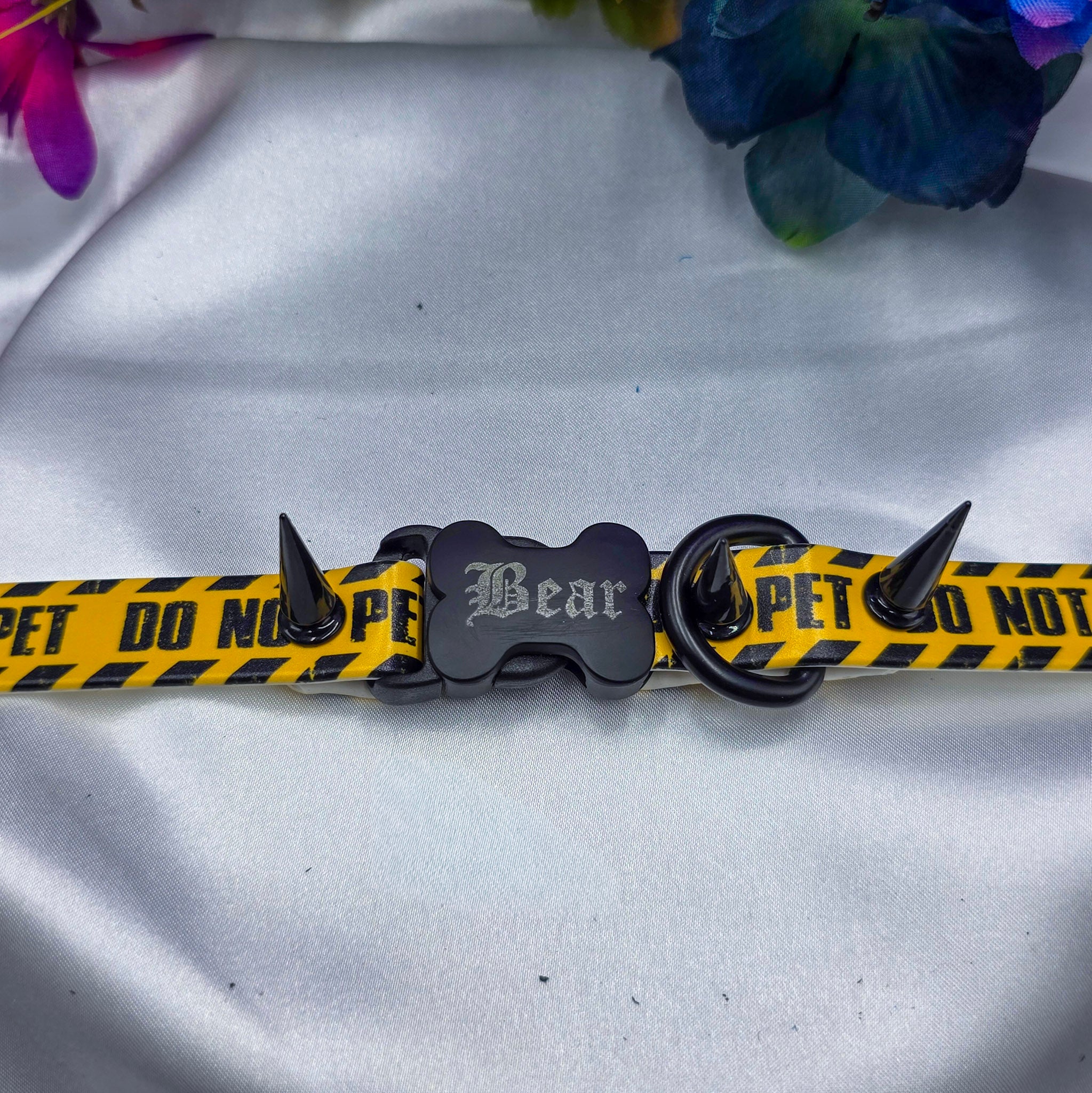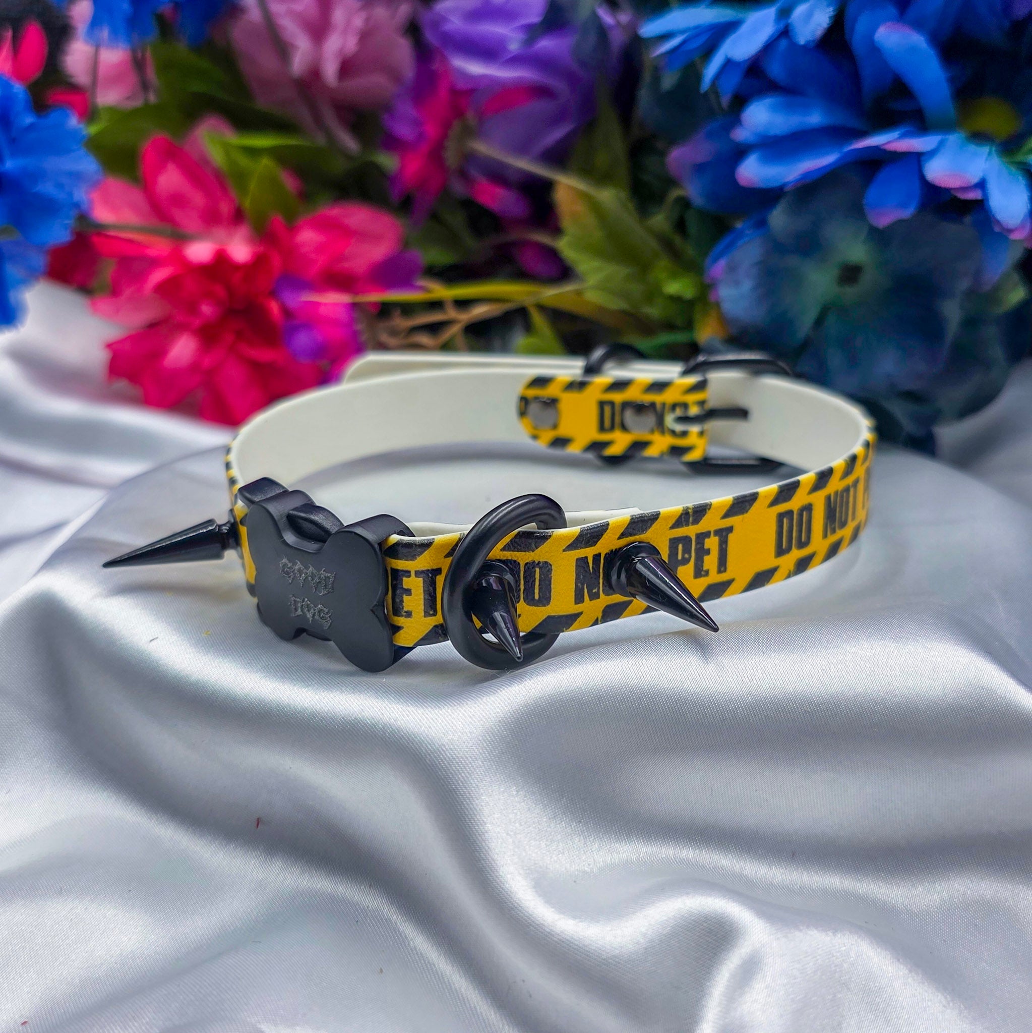 These are made in the Faux Puppy style with a signature bone shaped front buckle and adjustable back buckle. All are made with matte black hardware and have matte black large spikes.