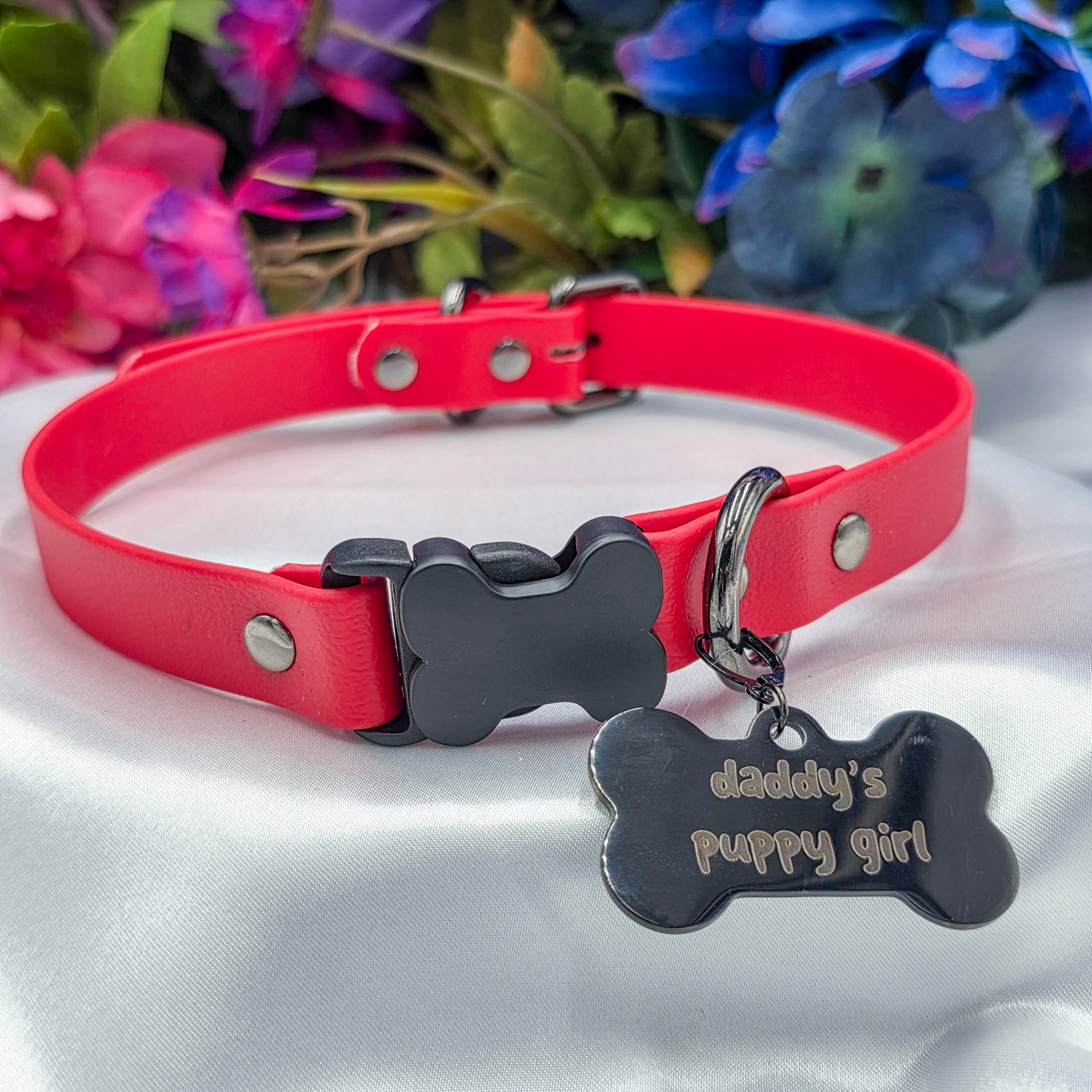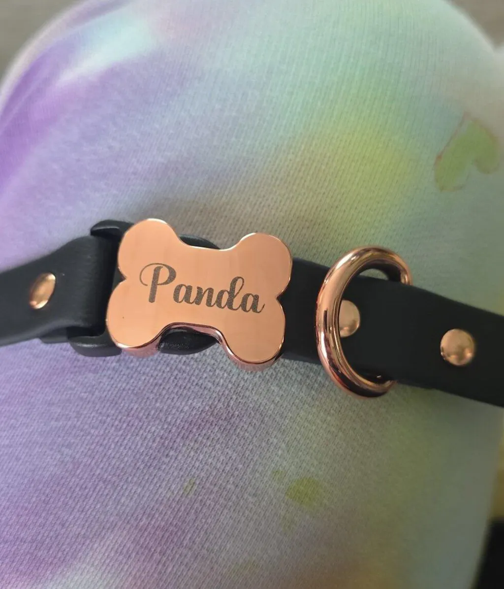 Design update 7/01/2025 - All Faux Puppy chokers will be made with an additional d-ring at the front for hanging charms/tags.